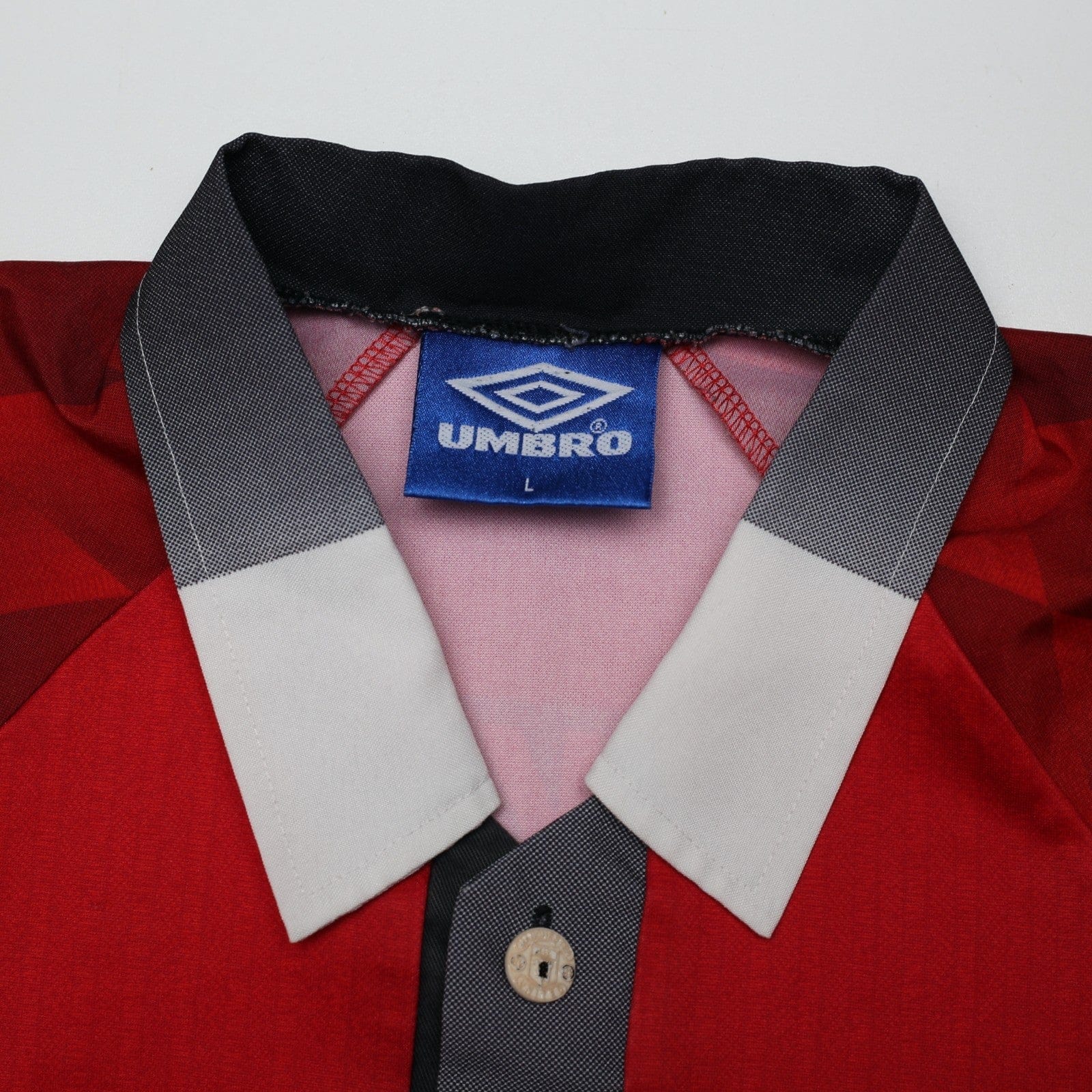 Original vintage Umbro home shirt as worn during Cantona's final season at Old Trafford. Official flock printing for Utd youngster David Beckham #10.