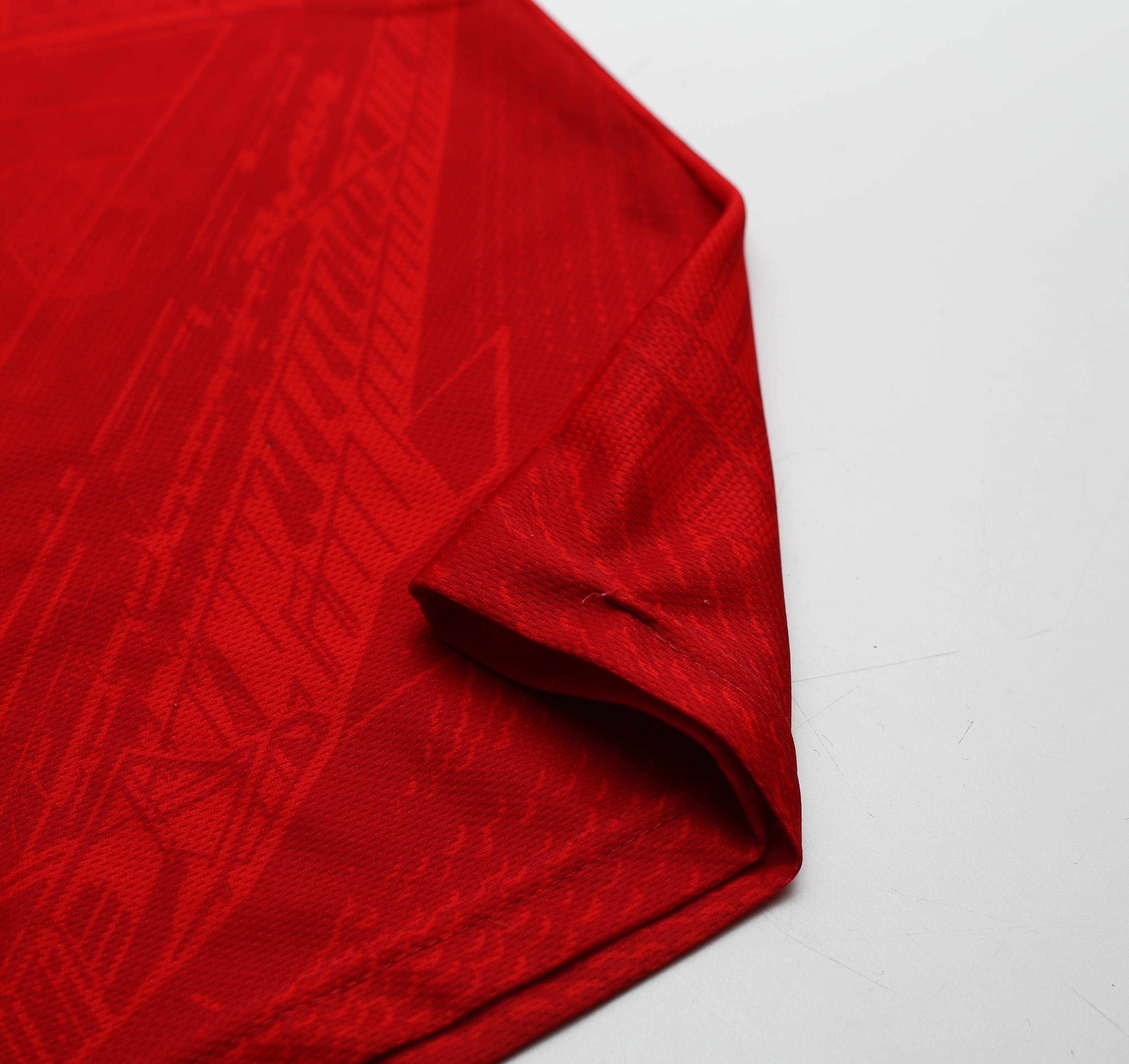 Vintage Umbro home shirt worn when United famously came from 10 points behind to take the title from Kevin Keegan's Newcastle in the 1995/96 season. Official flock printing for Utd legend Eric Cantona #7.