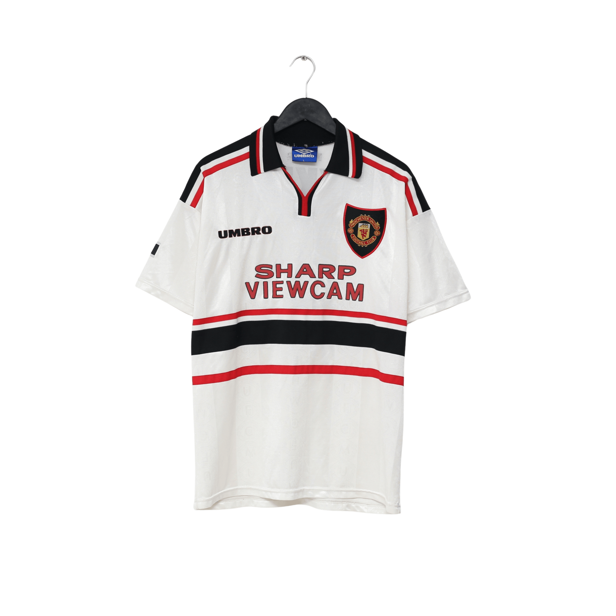 Original vintage Umbro away shirt from the famous 1998/99 Treble season. Official European flock printing for Utd legend David Beckham #7.