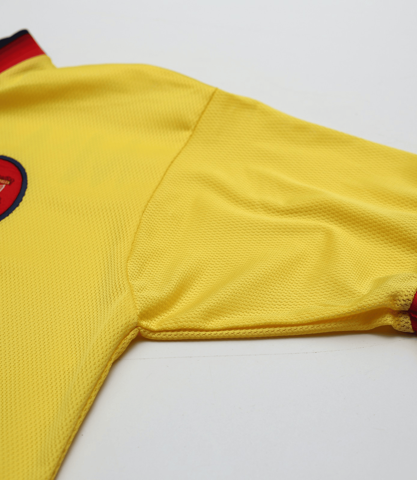 Classic bright yellow away shirt as worn when the side finished 3rd and 7th respectively in the Premier League. Player size Lextra felt print for club legend Steve McManaman #7