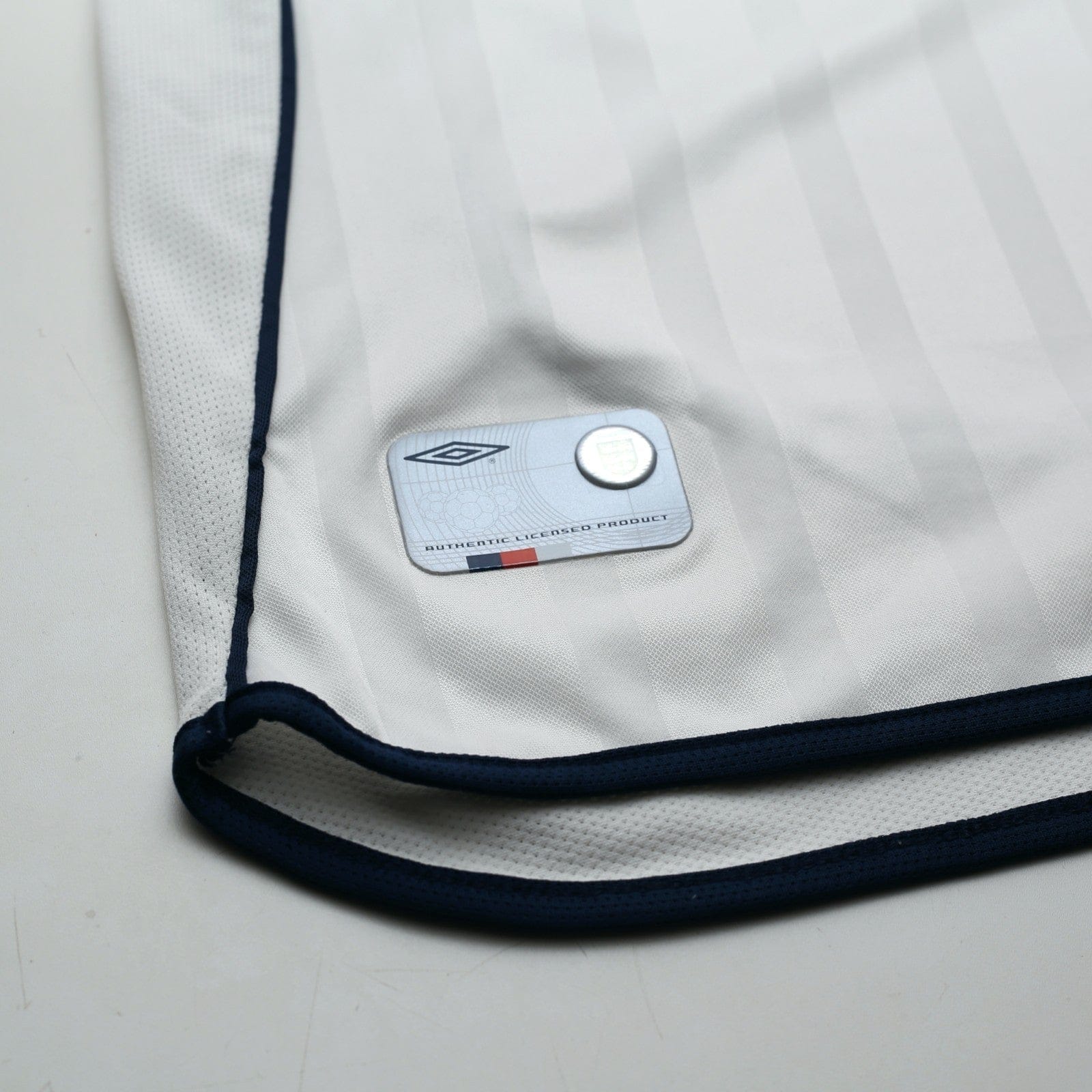 Official Umbro flock print for England legend David Beckham #7 and official Greece match embroidery detail