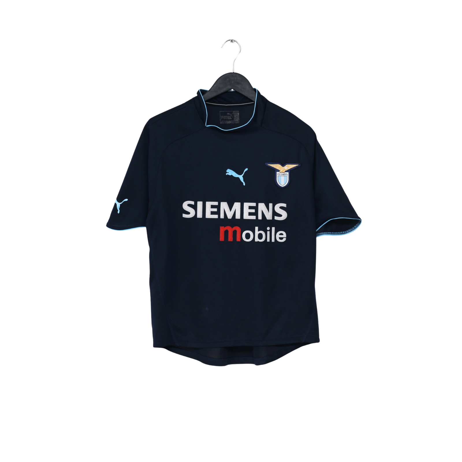 Vintage PUMA away shirt worn by the Italian giants when Lazio finished 4th in Serie A. Original style flock print for classy Argentine forward Claudio Lopez #7.