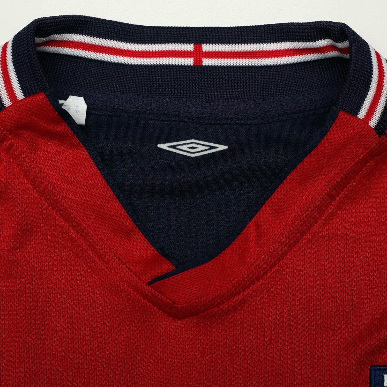 Original vintage Umbro away shirt as worn during the 2002/04 period. Official flock print for young Everton wonderkid Wayne Rooney #23 and official match detail as worn on the player shirts for his's debut game v Australia (International Friendly) 12/02/2003