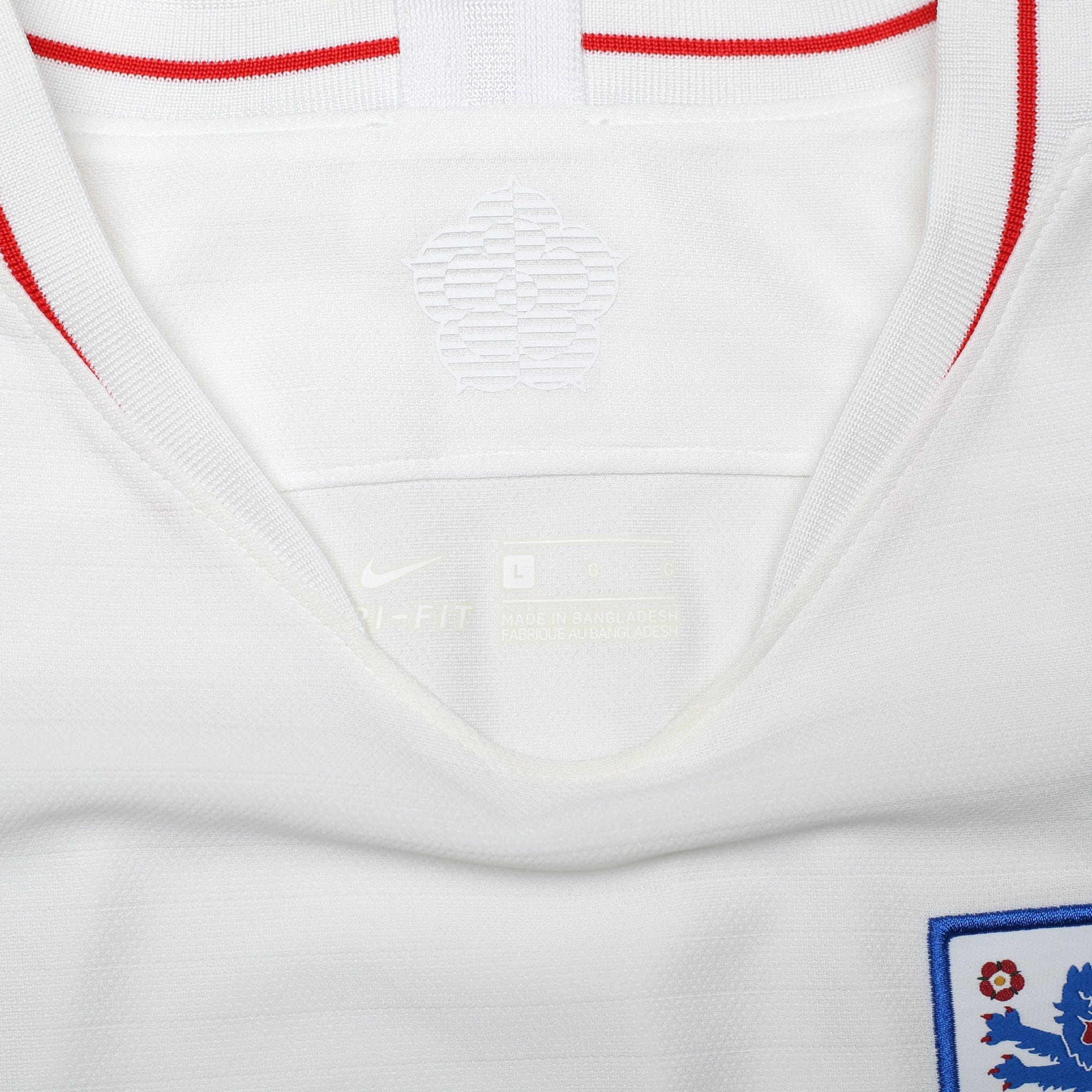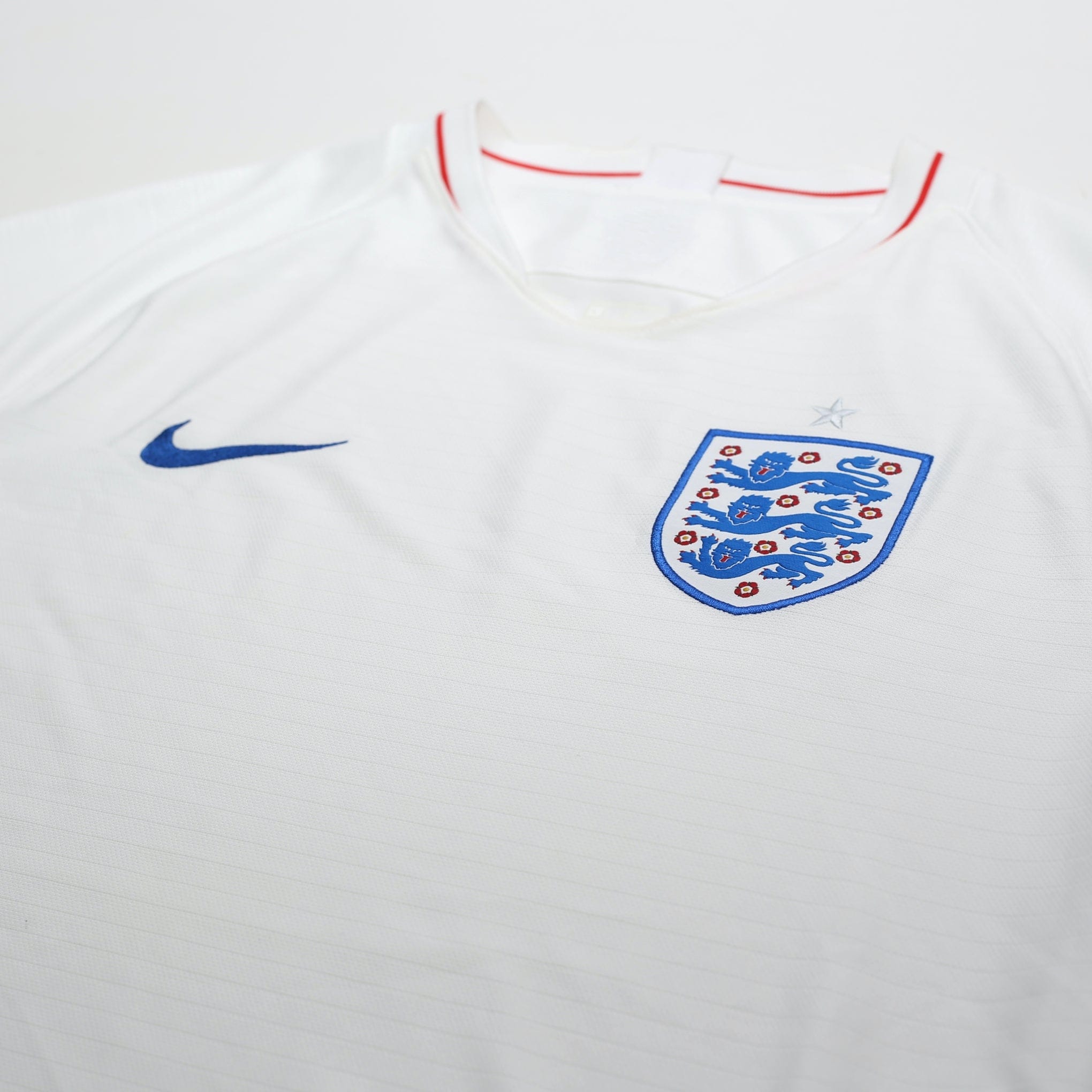 Original Nike home shirt as worn when England reached the Semi Finals of the World Cup in 2018 before being defeated by Croatia in extra time. Perfect for watching the World Cup.